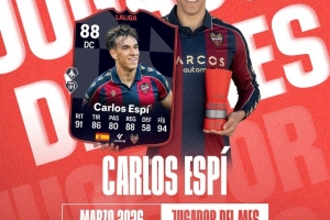 体育资讯3月28日讯 西甲官方宣布,莱万特前锋卡洛斯·埃斯皮当选西甲3月最佳球员。