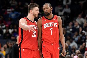 体育资讯4月2日讯 NBA常规赛,火箭119-113力克雄鹿。赛后申京接受采访。
