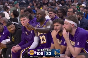 不多见!詹姆斯不满场边勇士球迷:放轻松 好好看球