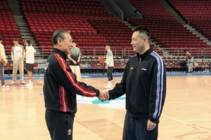 上午的踩场训练中,场边发生有趣的一幕,北京男篮主帅许利民和上海男篮主帅卢伟寒暄,他说道:“你们现在太猛了,拿第一了啊。”