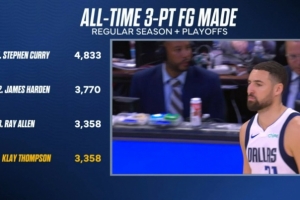 克莱常规赛+季后赛进3358记三分 与雷·阿伦并列历史第3&库哈前二
